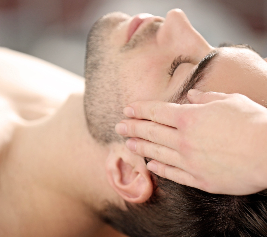 Soin sur mesure adaptés aux caractéristiques de la peau des hommes. Un modelage du visage avec des balles de massage complète ce soin pour un effet lissant renforcé.